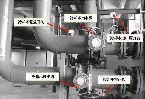 二、冷却水系统的组成冷却水循环系统是通过热交换实现制冷能量转移的闭环系统。其运行机制为:冷却水在组冷凝器中吸收制冷剂释放的热量后温度显著升高,经循环水泵驱动进入冷却塔进行热湿交换,通过塔内喷淋装置与空气接触实现热量散失,降温后的冷却水重新回流至冷凝器参与下一轮热交换,形成持续的热量传递循环。