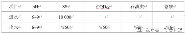 本项目为国内某大型煤矿采煤废水处理工程,处理规模为30 000 m3/d,主要污染物为悬浮物。综合考虑24 h内的水质指标波动情况、井下生产实际情况,设计进水悬浮物浓度为10 000 mg/L。出水水质应达到《煤炭工业污染物排放标准》(GB20426—2006)中采煤废水污染物限值要求。设计进出水水质见表1。