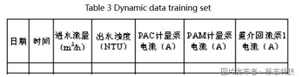 加药泵和回流泵的电流与流量相对应,可以通过分析水泵电流的变化,反应出流量的变化。最终建立的单台重介速沉设备动态数据训练集见表3。