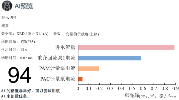 加药的精准程度影响重介速沉工艺出水指标和运行成本。AI人工智能软件作为一款数据科学工具,用数字技术取代了“传统人的经验和直觉”。与传统加药控制方式相比,采用AI人工智能加药系统,可以根据水量和水质,实时的精准调控加药量,保证出水水质平稳,可以实现提前对出水水质指标的预测。本项目通过AI人工智能软件对现有重介速沉工艺进行数据分析,并寻找数据间的潜在关联,自主创建算法模型,并对其有效性进行验证,最终达到可用运于指导生产的实验目的。在同样工控下对比,AI人工智能加药比传统加药节省药量13.5%,实现节能降耗;AI人工智能加药系统可以对连续增加的数据进行深度学习,不断自动校正模型参数,使控制更加精确。